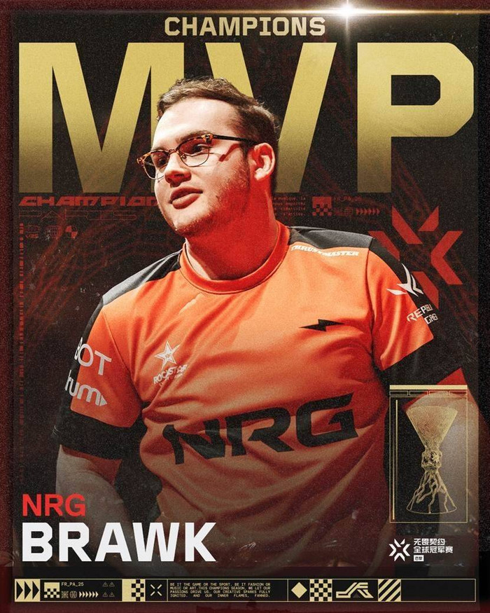 最终,NRG以3-2战胜FNC夺得2025无畏契约巴黎全球冠军赛总冠军,NRG队内选手“奥丁王”brawk凭借亮眼的表现获得总决赛MVP。